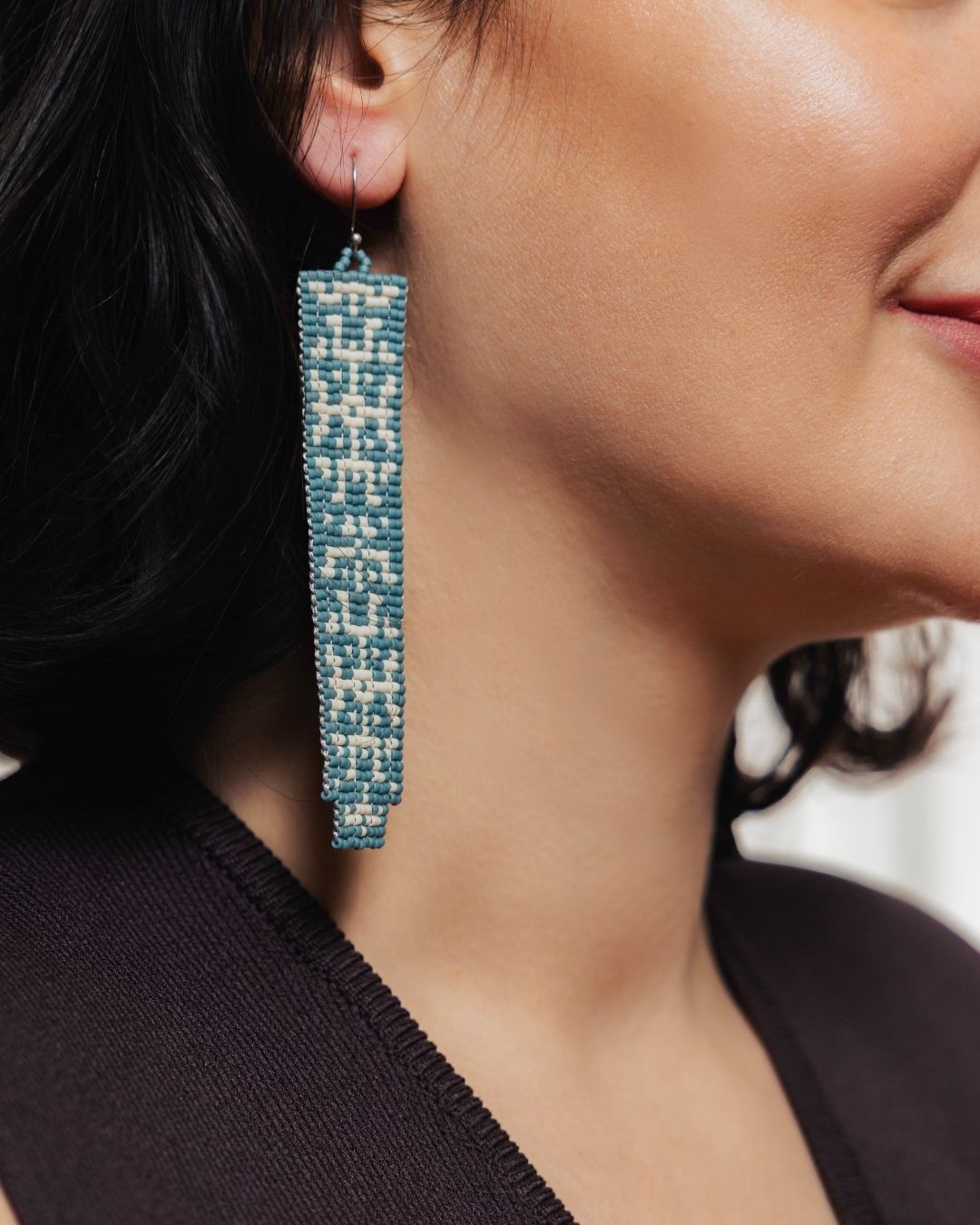 Dikey formda, yüzey boyunca örülen boncuk yapısı